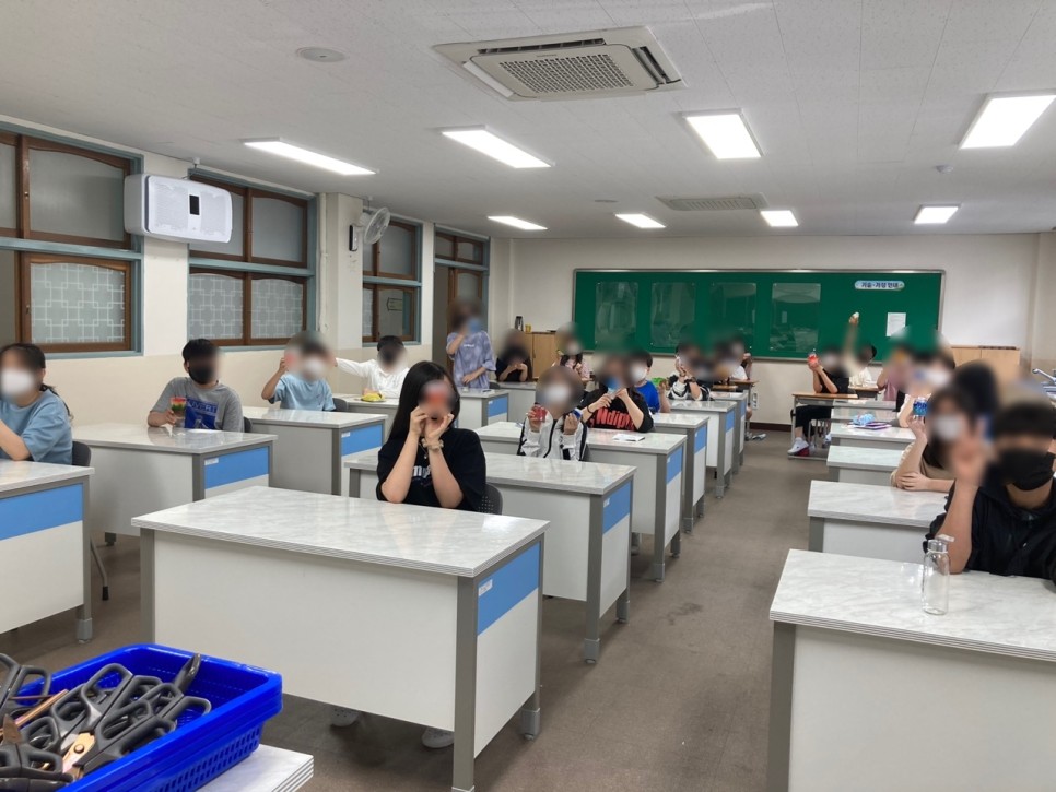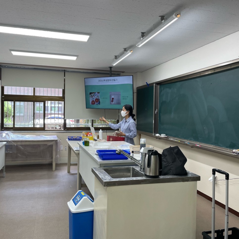 6월 23일(수) 일곡중학교 학생들을 대상으로 녹색소비교육과 업사이클링 체험활동을 진행하였습니다. 기후변화로 인한 문제와 해결방안, 녹색소비 및 녹색소비 실천방법, 환경마크에 대해 배워보았습니다. 재활용, 재사용, 새활용의 뜻을 학습하였습니다. 마지막으로 폐유리병과 아이스팩을 활용한 아이스겔 방향제 만들기 활동을 하였습니다. 이번 교육을 통해 청소년의 녹색소비문화가 전파되기를 바랍니다.