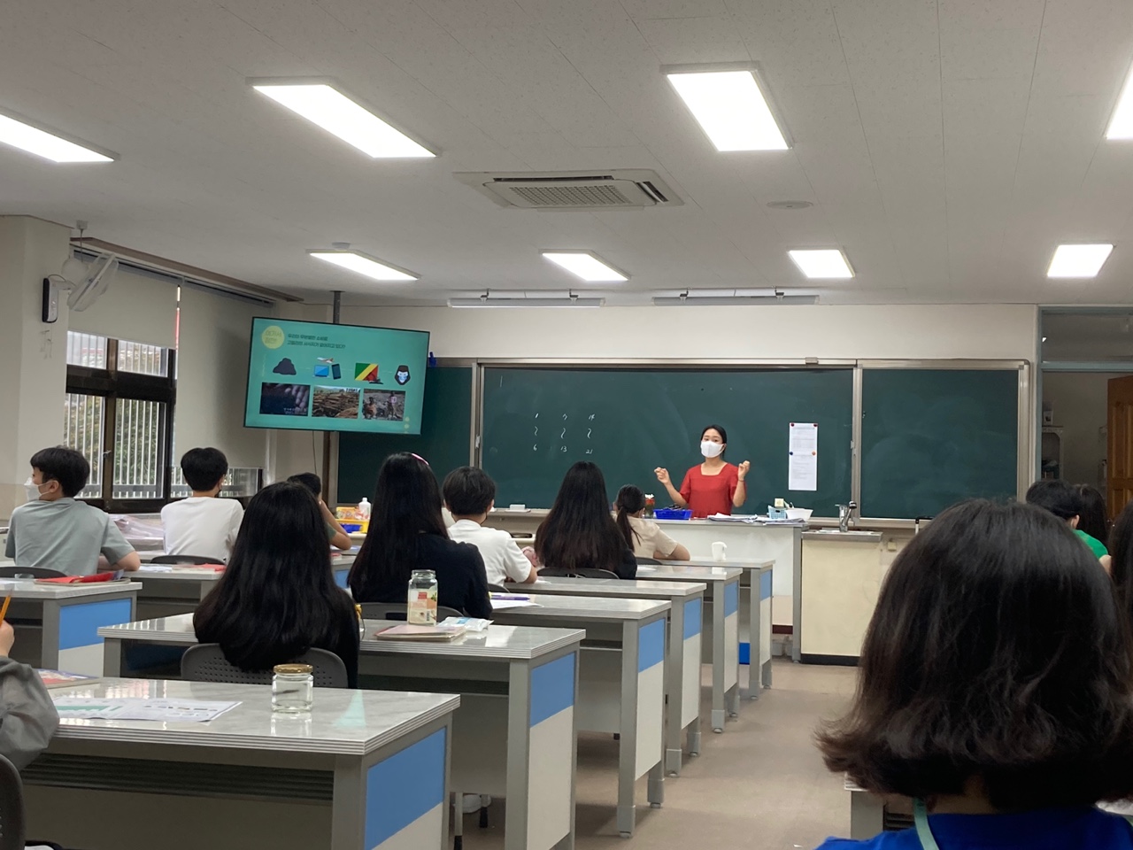 6월 24일(목) 일곡중학교 학생들을 대상으로 녹색소비교육과 업사이클링 체험활동을 진행하였습니다. 기후변화로 인한 문제와 해결방안, 녹색소비 및 녹색소비 실천방법, 환경마크에 대해 배워보았습니다. 재활용, 재사용, 새활용의 뜻을 학습하였습니다. 마지막으로 폐유리병과 아이스팩을 활용한 아이스겔 방향제 만들기 활동을 하였습니다. 이번 교육을 통해 청소년의 녹색소비문화가 전파되기를 바랍니다.