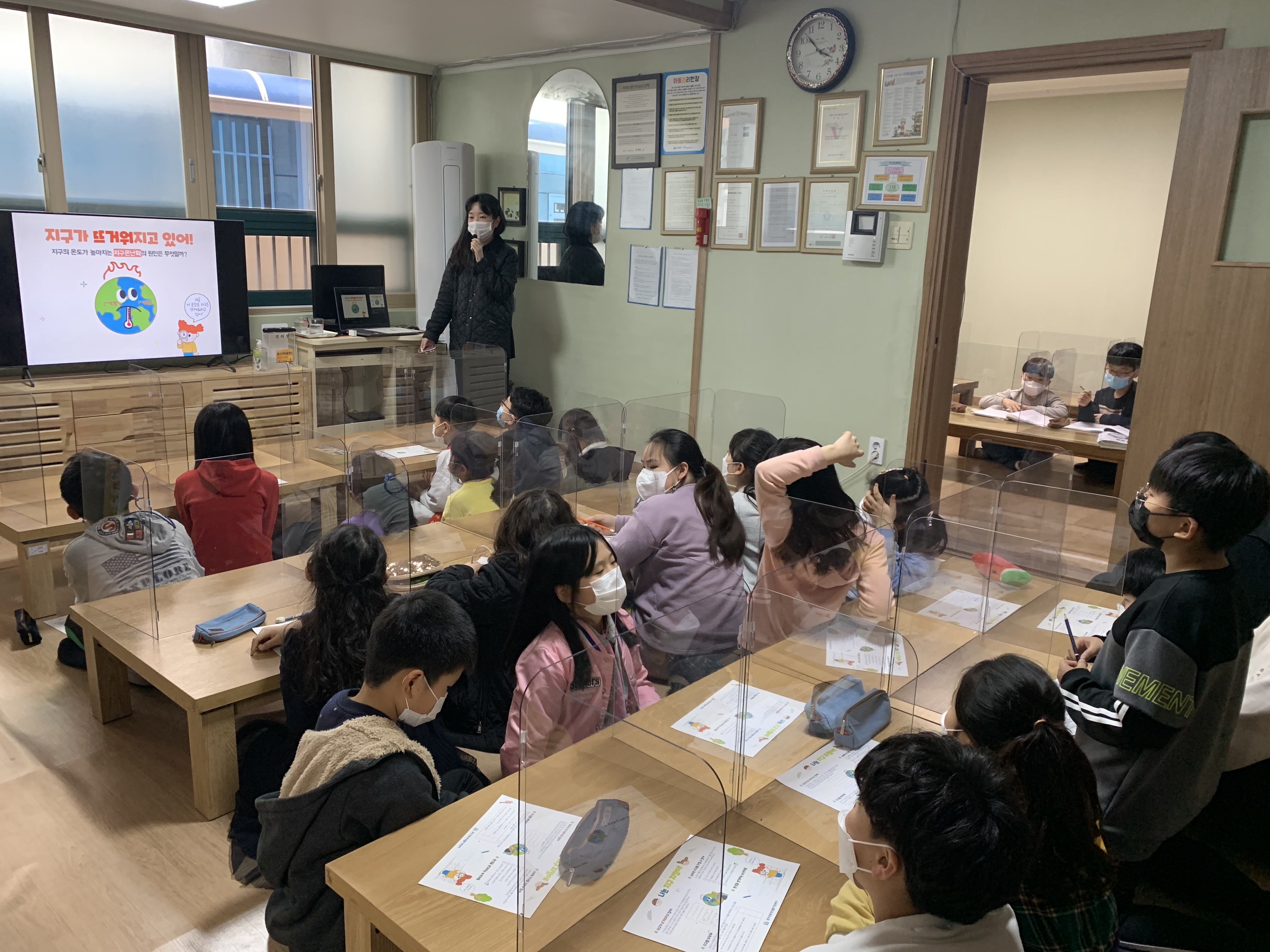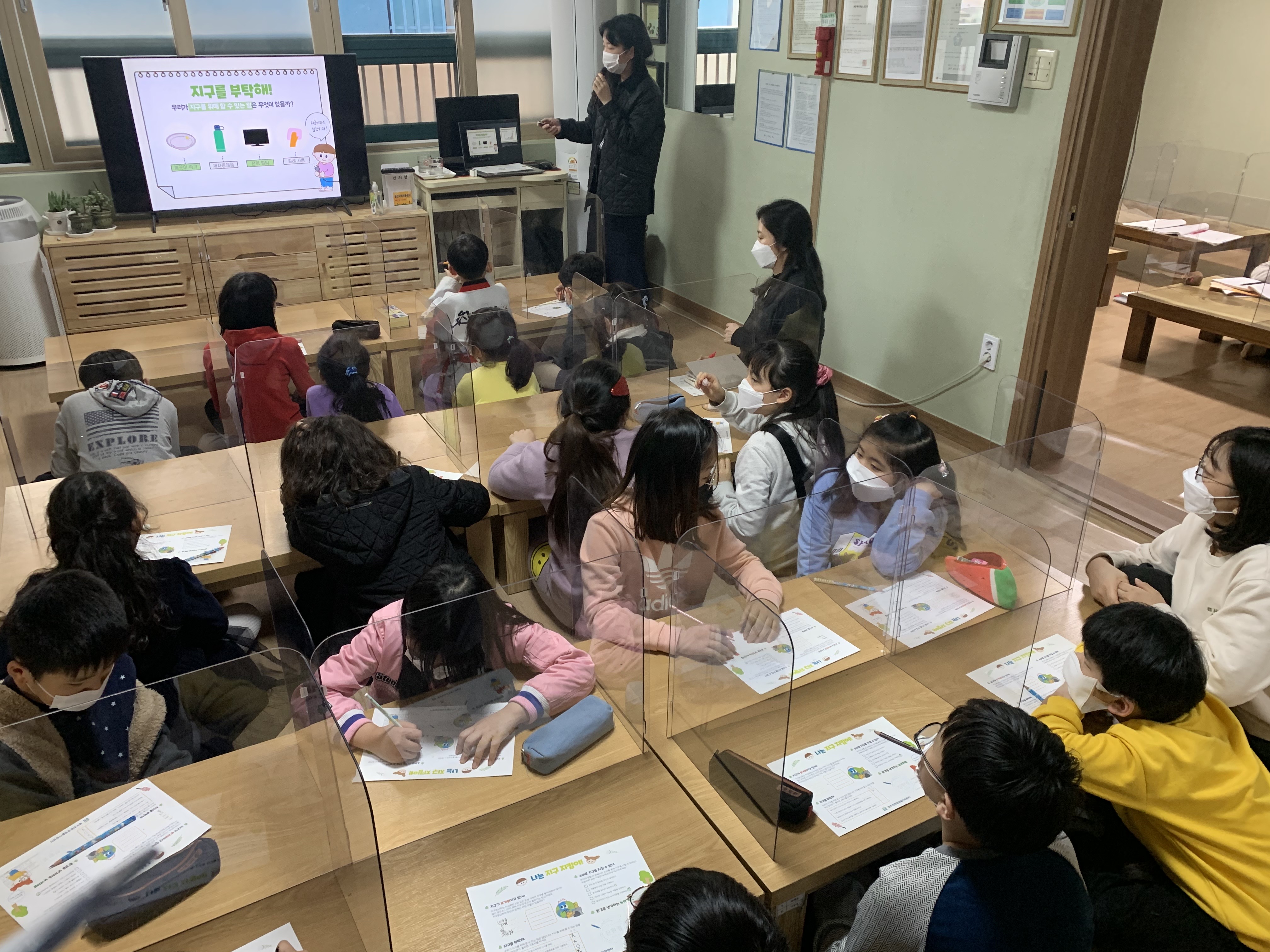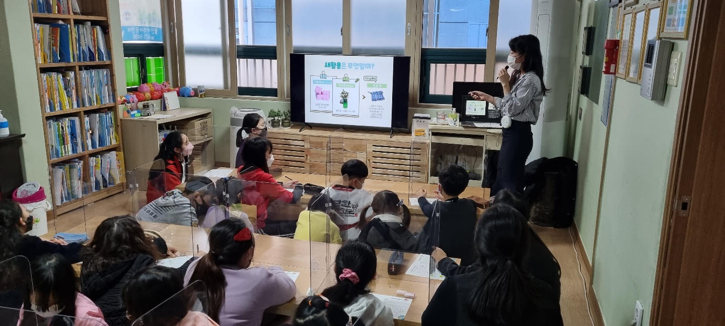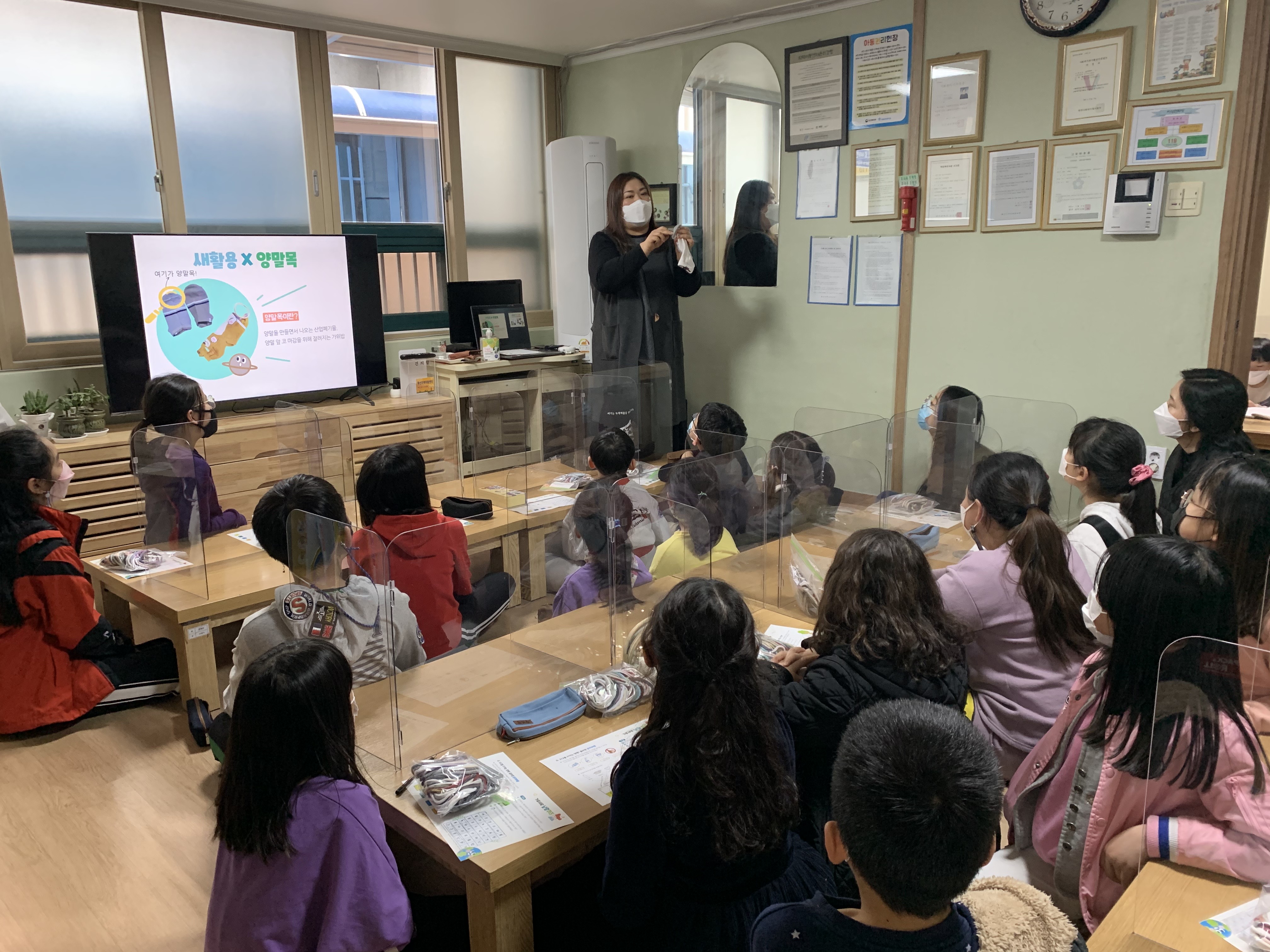 3월 19일(금), 월산지역아동센터에서 '녹색소비와 업사이클링'을 주제로 진행된 녹색소비교육은