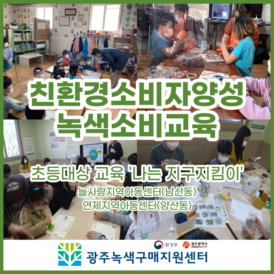 4월 7일(수), 늘사랑지역아동센터, 연제지역아동센터에서 초등대상교육 '나는지구지킴이' 주제로 녹색소비교육이 진행되었습니다.