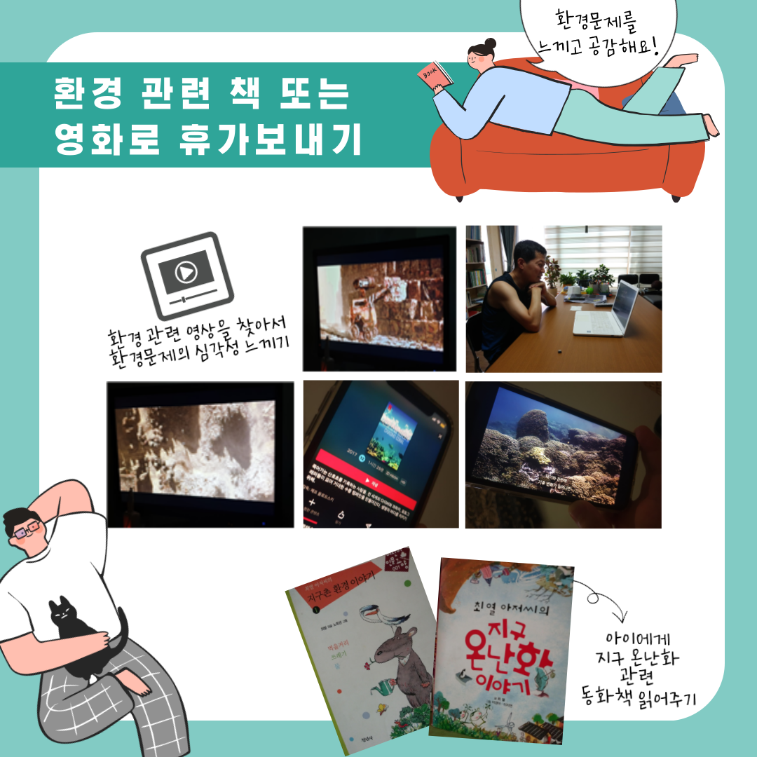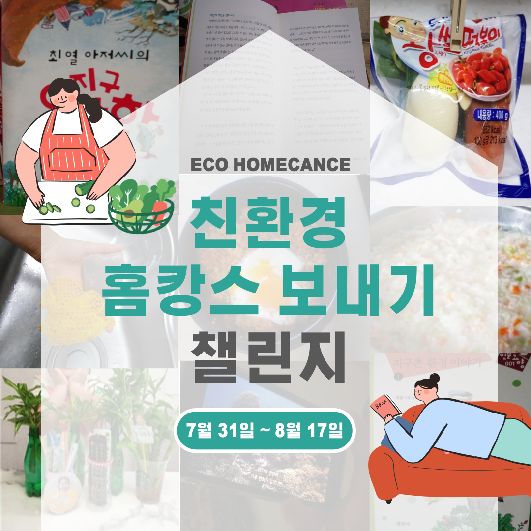 ![]() ![]() ![]() ![]() ![]() 7월 31일(금)부터 8월 17일(월)까지 코로나로 인해 집에서 휴가를 보내는 시민들을 위해 친환경 홈캉스 보내기 챌리지를 진행하였습니다. 광주 시민을 대상으로 4개의 도전 과제(녹색제품과 휴가보내기, 냉장고 속 남은 식재료로 정리하는 휴가보내기, 환경관련 책, 영화로 휴가보내기, 기발한 친환경 홈캉스 보내는 아이디어 알려주기) 중 1개를 선택하여 챌린지가 진행되었고 우수참여자를 선정하였습니다. 이번 챌린지를 통해 환경과 미래세대를 생각하는 녹색소비자가 되어 친환경을 실천하기를 바랍니다. |