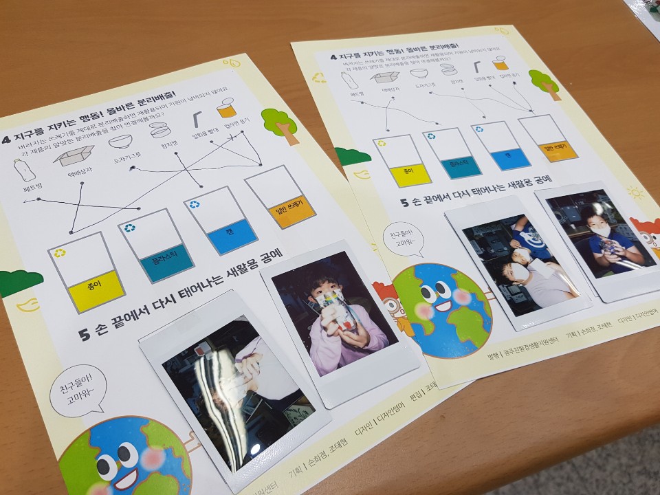 ![]() ![]() ![]() ![]() ![]() 10월 10일(토), 광주친환경생활지원센터에서 광주지역 초등 저학년 동반 가족을 대상으로 '나는 지구지킴이!'교육을 진행하였습니다. 녹색소비 이론교육과 함께 가정에서 사용하지 않은 폐유리병을 직접 준비하여 업사이클링 체험을 진행하였습니다. 이번 교육을 통해 녹색소비에 대해 인식하고 친환경에 대한 공감대를 높이는 계기를 마련하고자 합니다. |
